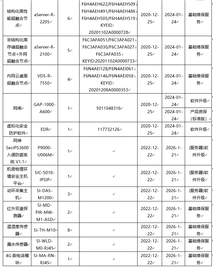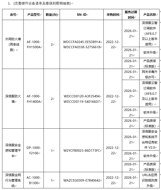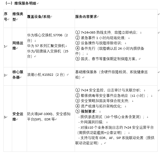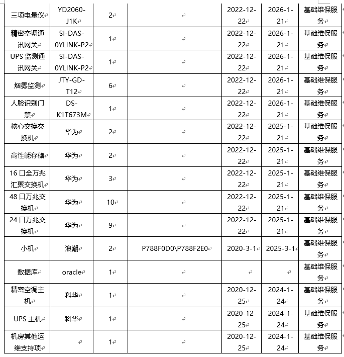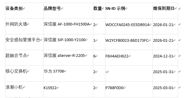 (二)硬件设备清单 注:以下设备需纳入维保范围(部分关键设备摘录,完整清单见附件)